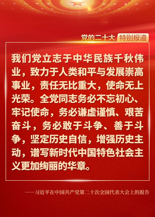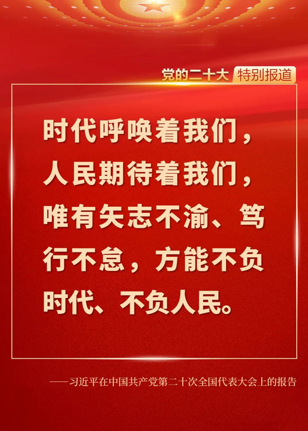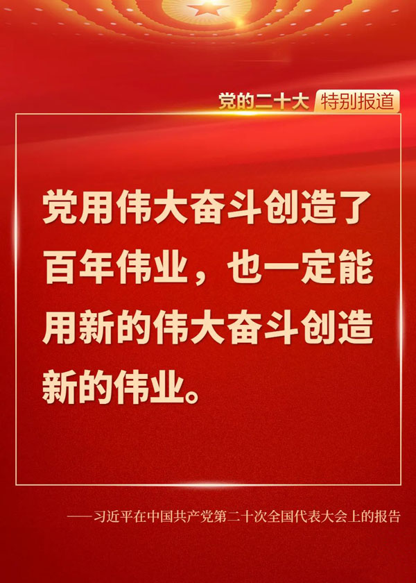 在全黨全國各族人民邁上全面建設(shè)社會主義現(xiàn)代化國家新征程、向第二個百年奮斗目標進軍的關(guān)鍵時刻,黨的二十大科學(xué)謀劃未來5年乃至更長時期黨和國家事業(yè)發(fā)展的目標任務(wù)和大政方針,為新時代的我們立起了新的歷史坐標,指明了新的奮斗方向,催人奮進、鼓舞人心。一起來重溫報告中的金句!