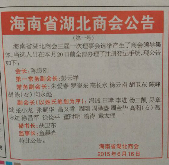 日前,在海南省湖北商會(huì)舉辦的三屆一次理事會(huì)選舉中,大會(huì)選舉表決通過了會(huì)長(zhǎng)、第一常務(wù)副會(huì)長(zhǎng)、常務(wù)副會(huì)長(zhǎng)、秘書長(zhǎng)及監(jiān)事長(zhǎng)人選,其中我公司總經(jīng)理高莉女士當(dāng)選副會(huì)長(zhǎng)職務(wù)。