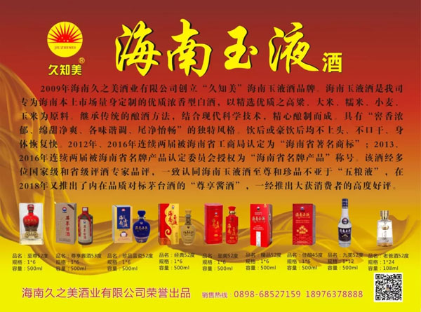 海南玉液酒,“只用品質(zhì)說(shuō)話”---海南久之美酒業(yè)永恒的追求!
