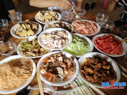 海南鄉(xiāng)村宴席好豐盛 紅酒白酒一起喝不醉不歸