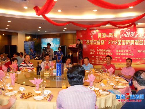由人民網(wǎng)海南視窗組織承辦的全國性橋牌賽事已經(jīng)連續(xù)舉辦了三屆,橋牌運動逐漸深入人心,并在海南逐步流行開來、“海南玉液酒”全程參與贊助的““熱帶天堂杯”2012全國橋牌混合團體賽在??趯毴A海景大酒店隆重開幕”來賓紛紛品嘗豎起大拇指。